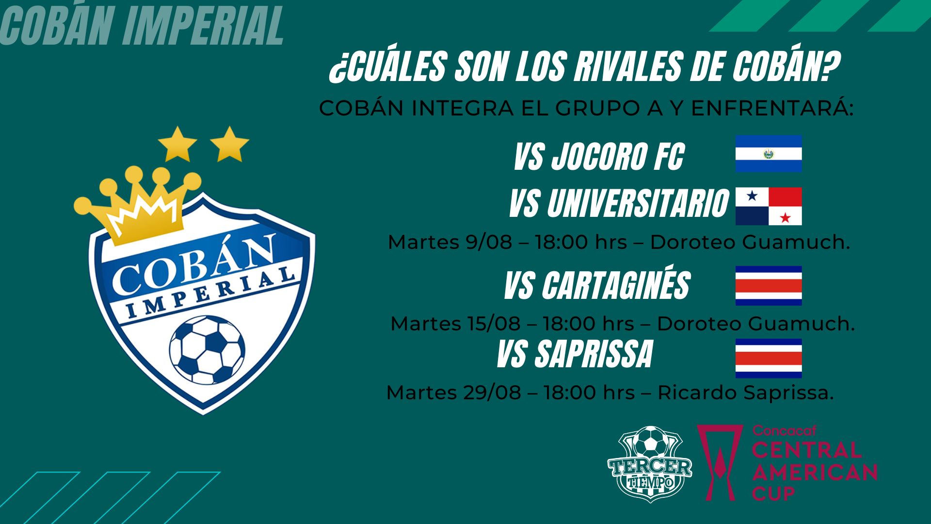Este mismo día, Cobán Imperial, verá acción de visita ante el Jocoro de El Salvador, en el duelo a disputarse a las 18:00 horas en el estadio Olímpico Metropolitano De San Pedro Sula, Honduras.