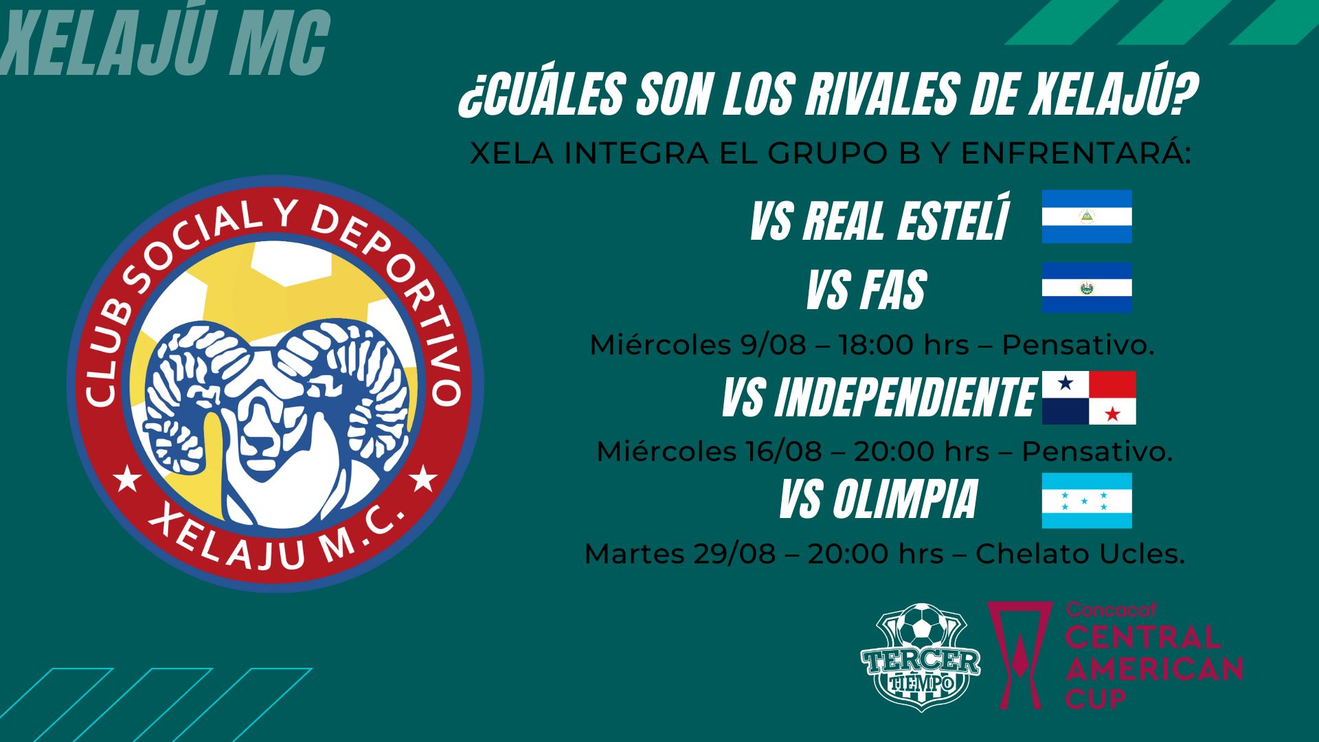 Precisamente este día, dos de los representantes Chapines, verán actividad. El primero, a las 16:00 horas en el estadio Independencia de Estelí, Nicaragua, Xelajú MC arrancará, luego de 10 años, una nueva aventura internacional frente al Real Estelí de Nicaragua.