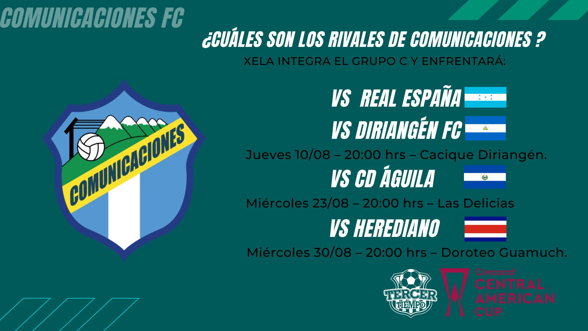 Mientras que Comunicaciones FC, volverá al ruedo internacional el miércoles a las 18:00 horas en el estadio Doroteo Guamuch Flores de la zona 5 capitalina, ante el Real España de Honduras.